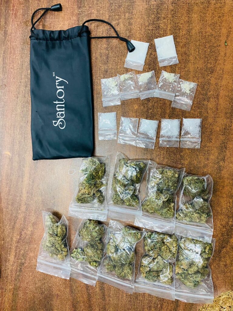 Al aproximarse al conductor, el policía observó en el portavasos unas bolsas con polvo blanco con las características de la cocaína, por lo que solicitaron a los tripulantes descender del vehículo. Al realizar una inspección de seguridad a la unidad encontraron 2 bolsas con polvo blanco al parecer cocaína, 9 bolsas con vegetal verde similar a la marihuana, 5 bolsas con una sustancia sólida de las características de la droga llamada piedra y 5 bolsas con una sustancia cristalina de las características de la droga conocida como cristal.