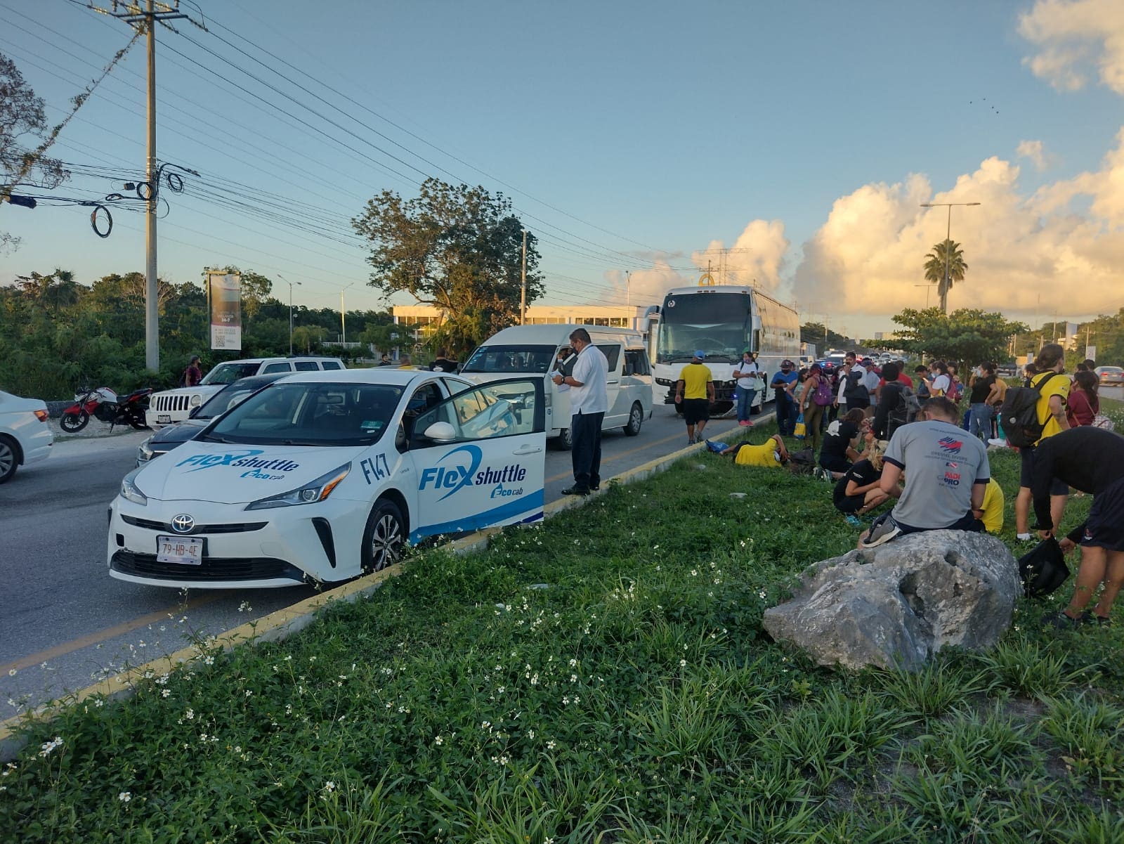 La Secretaría de Seguridad Pública y Tránsito Municipal de Solidaridad informa sobre un hecho de Tránsito en el que están involucrados 3 automóviles a manera de “carambola”, sobre la carrerera federal a la altura de la avenida Universidades en dirección de norte a sur.