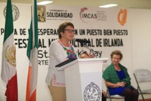 Al finalizar su intervención, Laura Beristain Navarrete aceptó la invitación de la embajadora a visitar su país para conocer la revolución educativa y social que se lleva a cabo en Irlanda, a través de una reforma de fondo, que se basa en la ampliación de la oferta educativa con calidad y de forma gratuita en todos los niveles.
