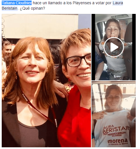 Otra más que dice apoyarle , pero que sí está inmiscuida en la política es Tatiana Clouthier, coordinadora de campaña de Andrés Manuel López Obrador, quien en un vídeo de Twitter compara al candidato de Morena con personajes como Winston Churchill, Nelson Mandela y José Mujica.