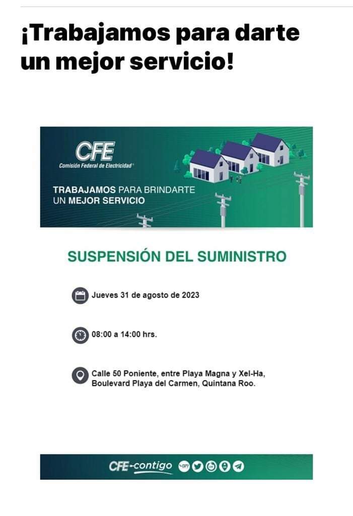 Cabe destacar que recientemente ha habido muchos apagones tanto en Playa del Carmen como en el resto del estado, lo que obliga a la CFE a concentrar esfuerzos para resolver esta problemática