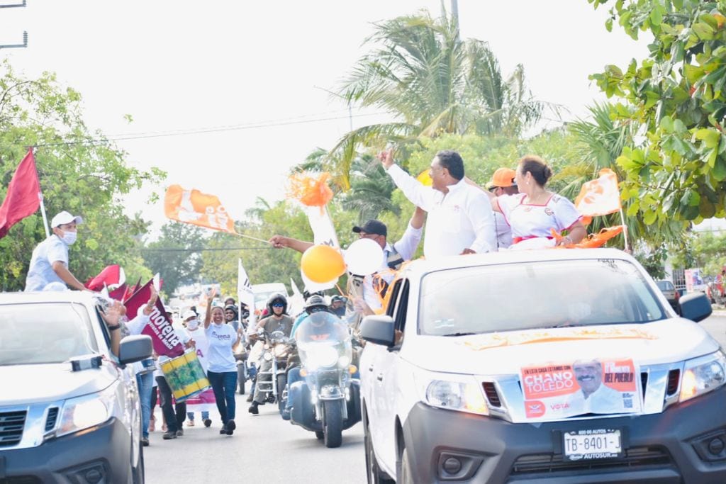 Playa del Carmen, Quintana Roo.- Con una mega caravana en colonias y fraccionamientos por todas las avenidas de la ciudad, fue el majestuoso cierre de campaña de Marciano “Chano” Toledo Sánchez, candidato a la presidencia municipal de Solidaridad por Movimiento Ciudadano.