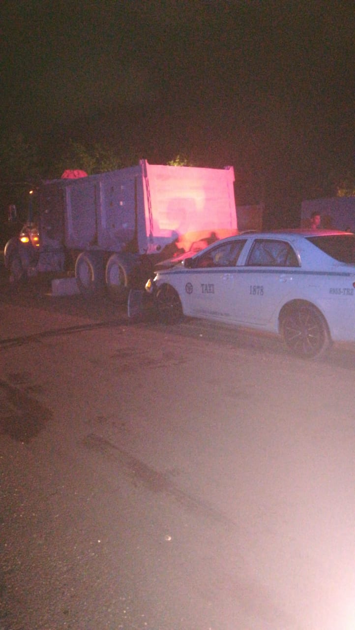 El taxi del sindicato “Lázaro Cárdenas del Río”, con número económico 1878 se estrelló de frente contra la parte trasera de un volquete, averiado y sin luces de emergencia, en la avenida mencionada, a la altura de la avenida 155, por la universidad Mayaland.