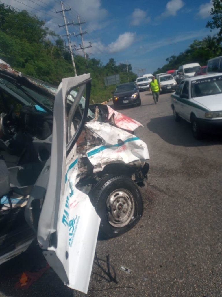 La van al parecer fue la causante de la fatal colisión, al tomar un retorno frente al hotel Vidanta, atravesándose en el camino de un motociclista, que murió al instante a causa del impacto. Una mujer, pasajera del vehículo de alquiler, fue llevada de emergencia en estado grave al hospital.