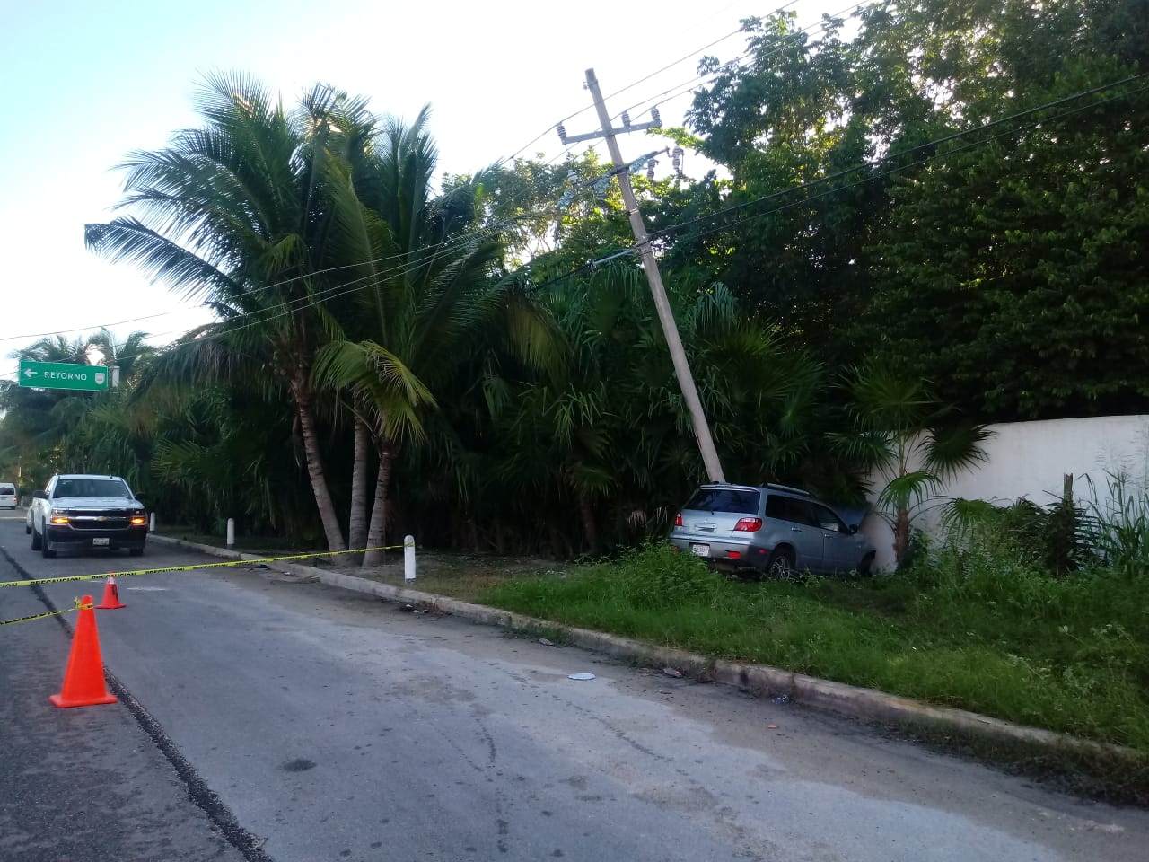 Playa del Carmen.- Un choque vehicular dejó cables eléctricos sobre la vía asfáltica y obligó al cierre parcial de la carretera federal rumbo a Puerto Morelos, lo que generó un considerable embotellamiento, en la entrada norte de Playa del Carmen.