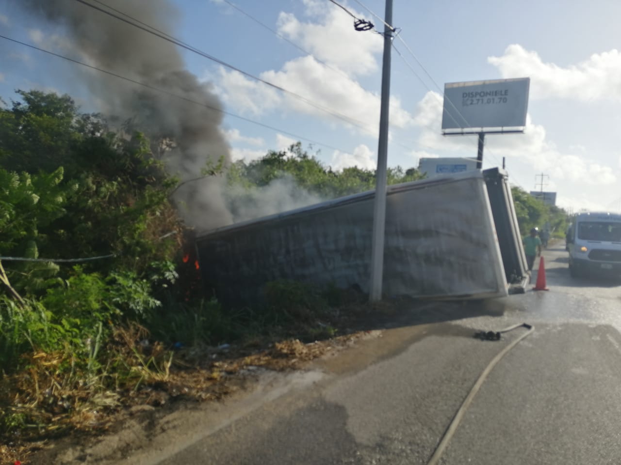 Los que en esta ocasión se quedaron mirando fueron los elementos del Honorable cuerpo de Bomberos, pues el tráiler chocó contra cables de alta tensión y eso ocasionó que empezara a incendiarse.