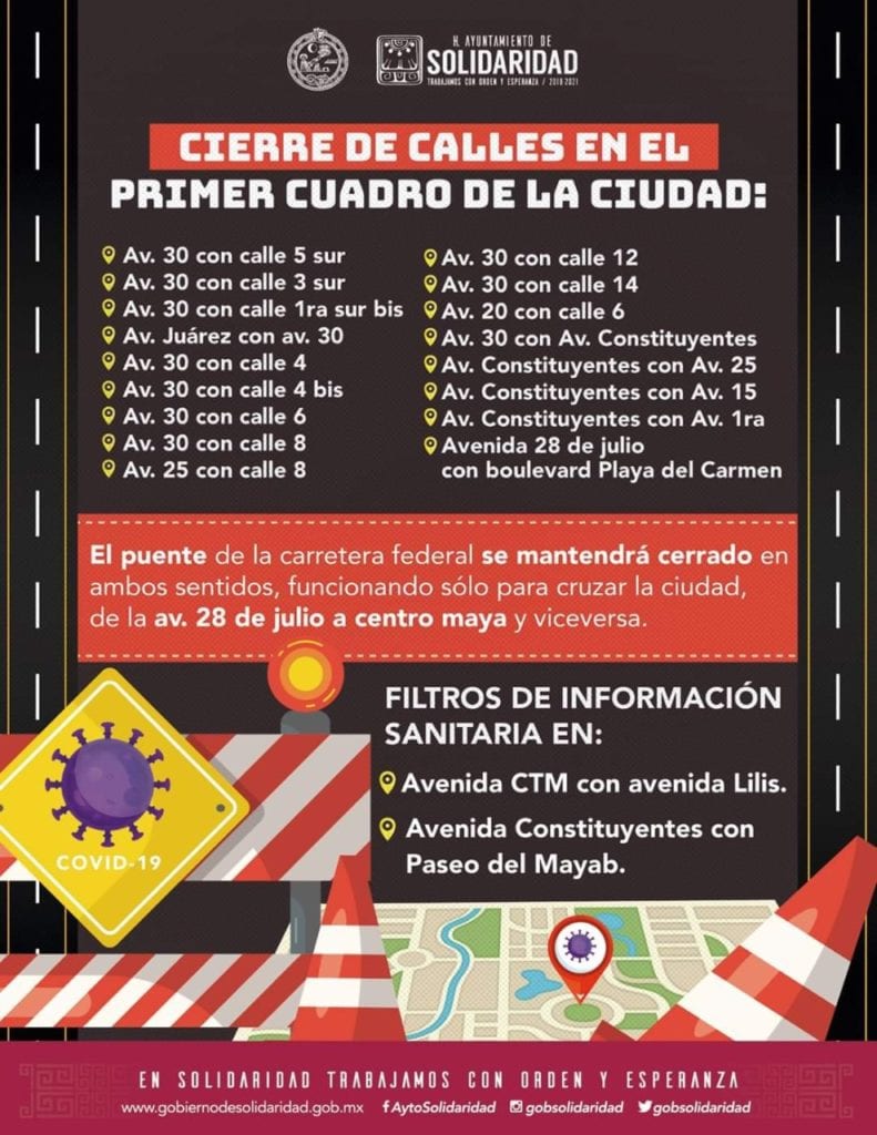 Además, el bulevar Playa del Carmen fue cerrado en su cruce con la avenida Solidaridad, tal como ya fue cerrada en la intersección con la 28 de Julio.