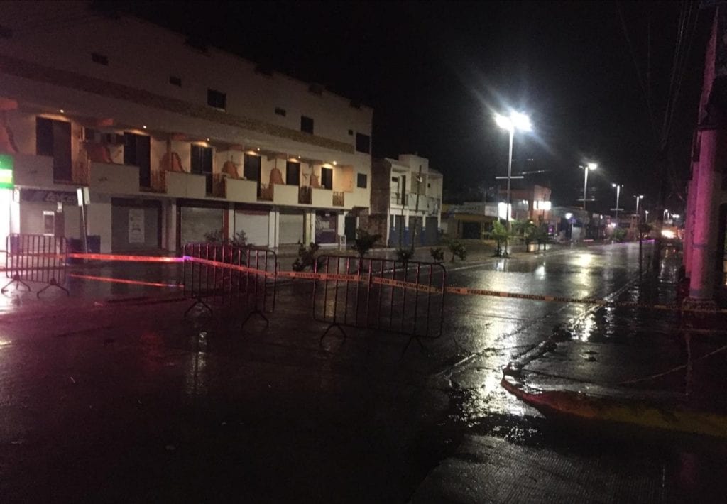 Playa del Carmen, Quintana Roo.- Cuando ya era de noche, elementos de la Secretaría de Seguridad Pública del Ayuntamiento de Solidaridad cerraron varios cruces viales, adicionales a los ya puestos en marcha, principalmente en la avenida 30 y sobre el bulevar.