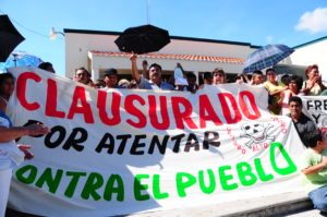 Tras marchar por las calles de Playa del Carmen, en las oficinas de la CFE, “Chano” colocó una gran manta en la que se leía “Clausurado por atentar contra el pueblo”.