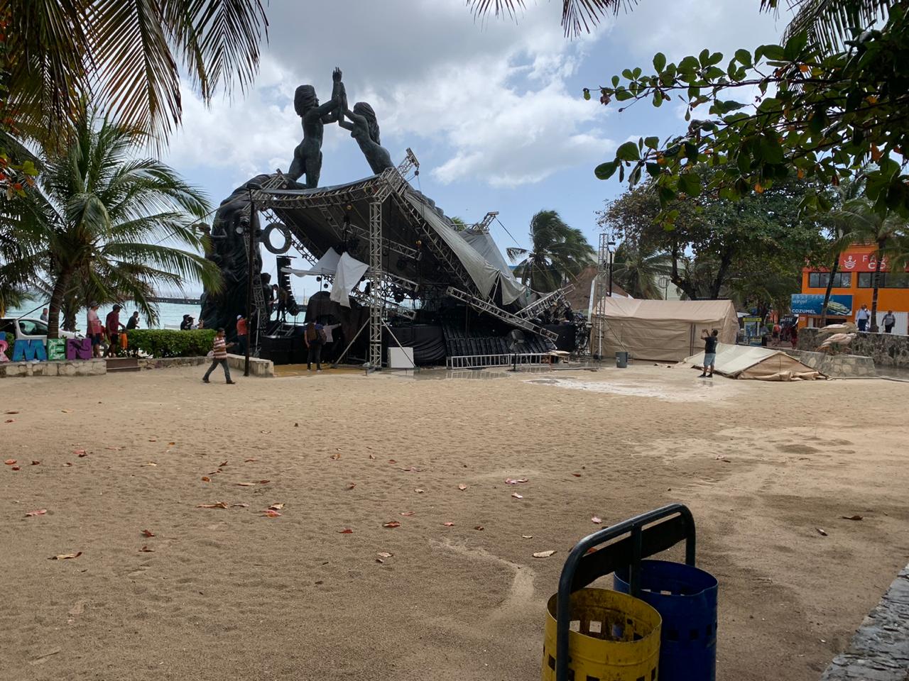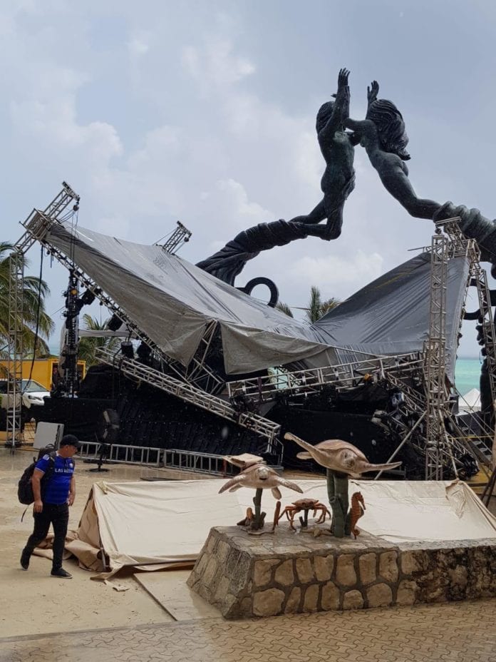 Playa del Carmen.- Los fuertes vientos que se dejaron sentir esta tarde, previo a una racha de lluvia, hicieron que colapsara el escenario montado para las bodas colectivas que se efectuarán esta tarde, en el parque Fundadores, dejando a tres personas heridas.