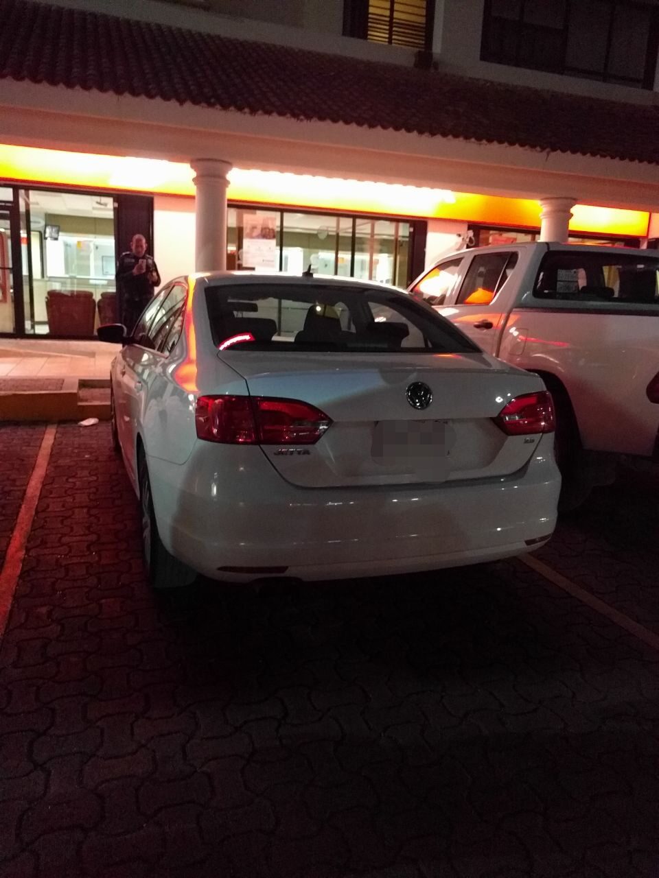 Al llegar al sitio los representantes de la ley ubicaron al sudamericano dentro de la tienda Sanborns de Quinta La Alegría, mismo que tenía en su poder varias tarjetas que se habían reportado horas antes como robadas mediante un cristalazo, así como bolsas de Ultrafemm, por lo que procedieron a su detención previa lectura de sus derechos.