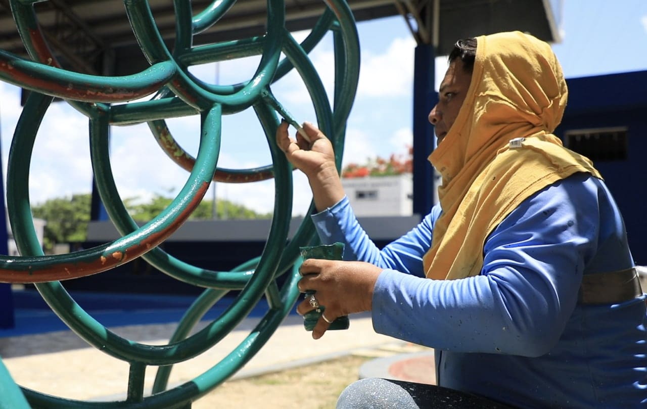 El titular de Servicios Públicos municipales, Benny Millán Parra destacó que, en este rescate de domos y parques, en varios casos ya han sido atendidos hasta por tercera vez, con la limpieza, pintura, mantenimiento de juegos infantiles, estructuras y reparación de alumbrado.