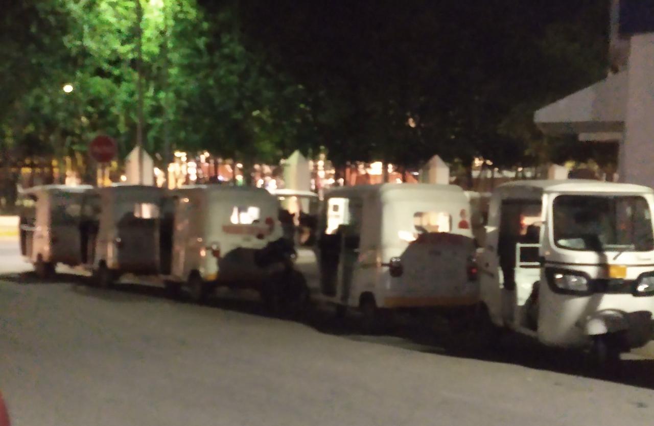 Playa del Carmen.- Aunque se trata de una vía de transporte irregular y sin medidas de seguridad, los mototaxistas de la flota TVS se congregaron esta noche, en la víspera de su expansión hacia el fraccionamiento Real Ibiza, como paso previo a su meta de llegar a Plaza Las Américas, lugar donde se concentra un gran número de rutas de transporte.