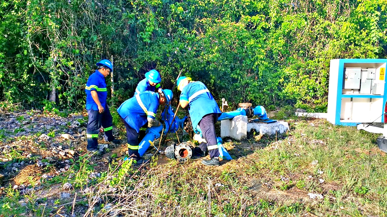 Tras más 10 horas de trabajo en el mantenimiento a la red de agua potable en la Zona de Captación, Aguakan restablece el servicio en gran parte del municipio Solidaridad.