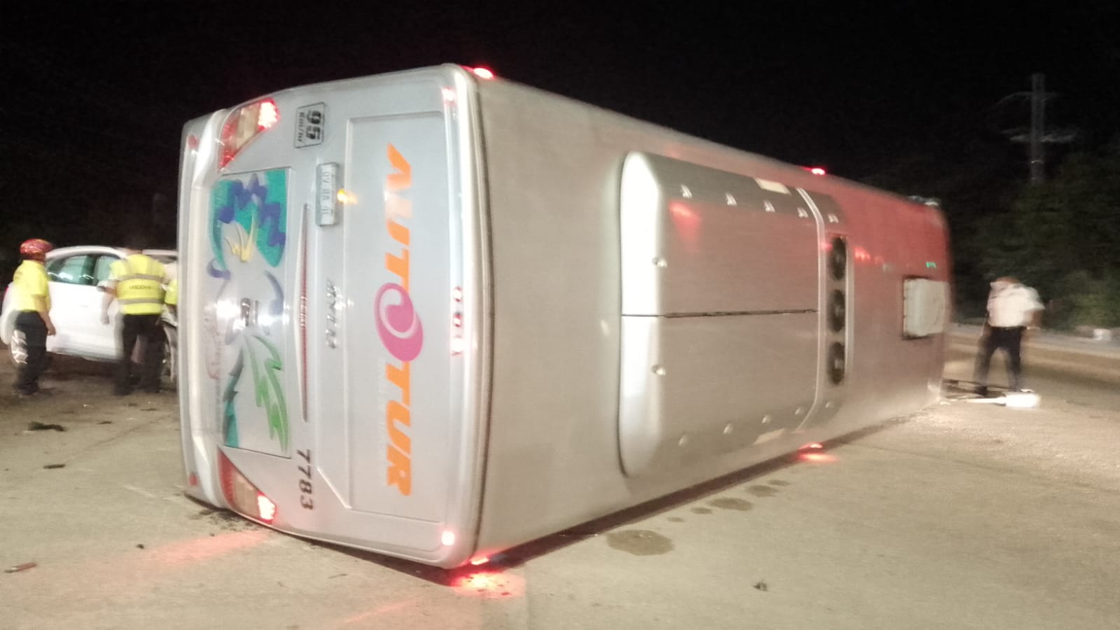 FOTOS: Conductor vuelca autobús y se da a la fuga en Playa del Carmen