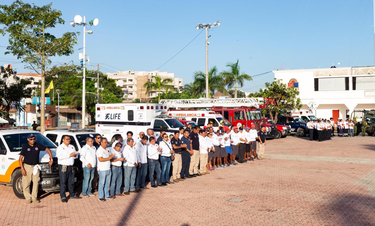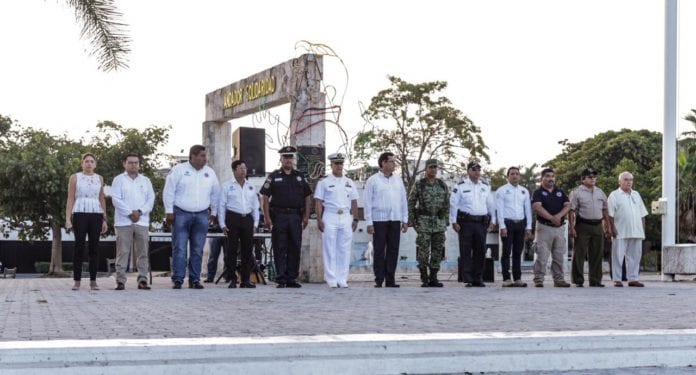 En presencia del Teniente Coronel de la Guarnición Militar de Cancún, Rodrigo Franco Juárez Magaña, del Capitán del Sector Naval de Cozumel, José Pérez Gutiérrez, y del encargado de la Policía Federal en Playa del Carmen, Armando Garrido Vega, el Secretario General destacó la importancia de la colaboración ciudadano para la prevención de riesgos, por lo que invitó a la población de Solidaridad a involucrarse en las capacitaciones de primeros auxilios, así como a estar siempre informados sobre los fenómenos hidrometeorológicos.