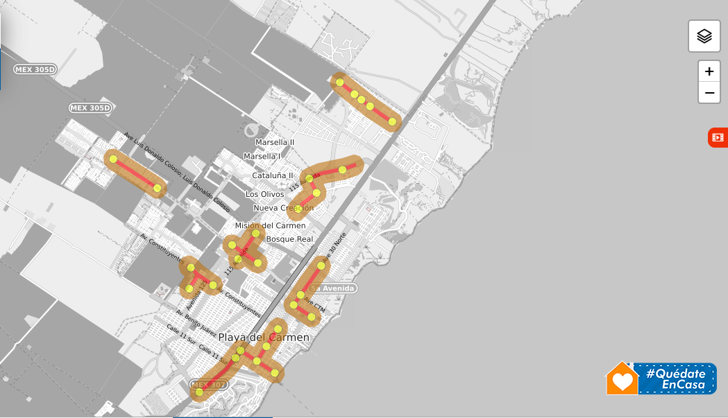 Cabe decir que el mapa muestra el grado o nivel de contagios de COVID-19 por colonia de las cabeceras municipales del estado, del 03 de Agosto, al 09 de Agosto. Playa del Carmen no tiene colonias en color rojo, que representa las que tienen el mayor número de casos activos acumulados. “Los casos activos descienden en número en aquellas colonias en color amarillo, mientras que las colonias en color verde corresponden a aquellas que no cuentan con casos de COVID registrados, sin embargo, esto no significa que no existan posibilidades de contagio”, señala el Gobierno del Estado.