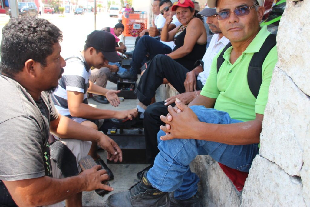 Estos hombres con su caja de utensilios conocidos con grasas de diversos tipos y colores, tintas, cepillos, brochas, jabones y demás artilugios, se ubican en la calle 30 con Av. Juárez, para dejar reluciente el calzado que se ve como nuevo aunque ya tenga varios añitos y eso parece ser un auténtico milagro.