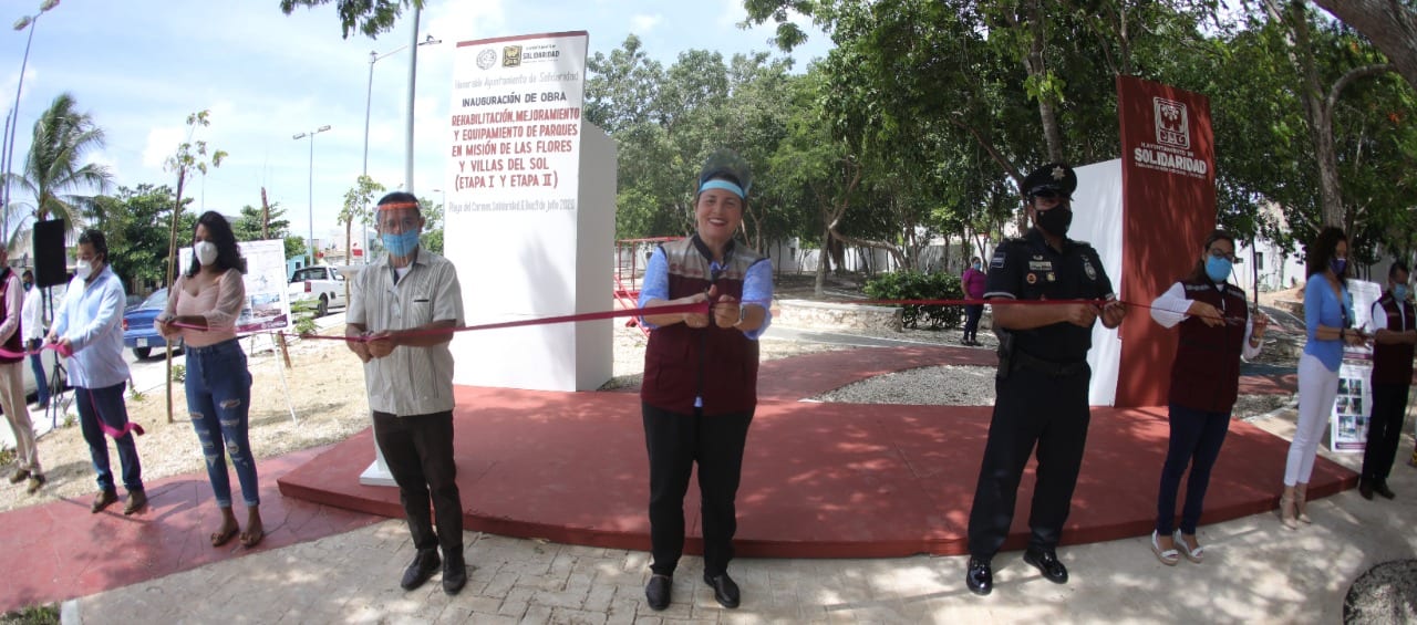 Playa del Carmen.- Se construyeron y rehabilitaron cinco parques en Misión de las Flores, Palmas I y Villas del Sol, como parte de las acciones puntuales impulsadas por el Gobierno Municipal, atendiendo las necesidades de los ciudadanos de contar con espacios dignos para su sano esparcimiento y mejorar la calidad de vida de miles de familias solidarenses
