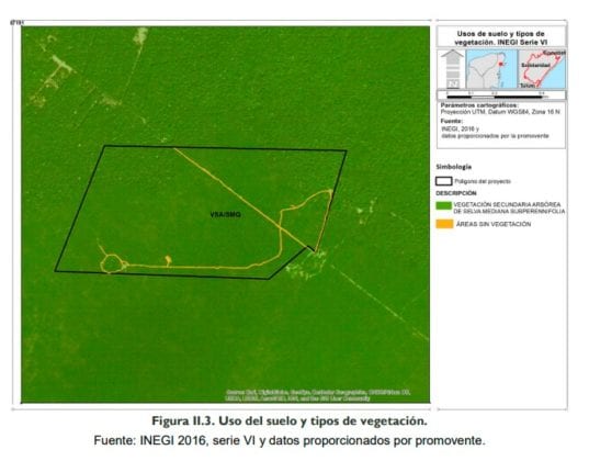 Según la manifestación de impacto ambiental, pretenden remover vegetación en 51 mil 903 metros cuadrados de la totalidad de 55.97 hectáreas que comprende el terreno.