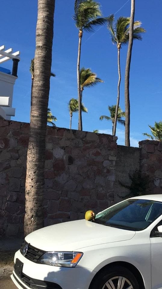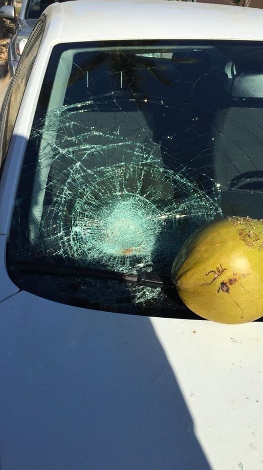 Hay quien piense en tener mala suerte pero esto sí que lo es, pues al estar estacionado bajo una palmera, un coco le cayó encima a su automóvil quebrándole el parabrisas.