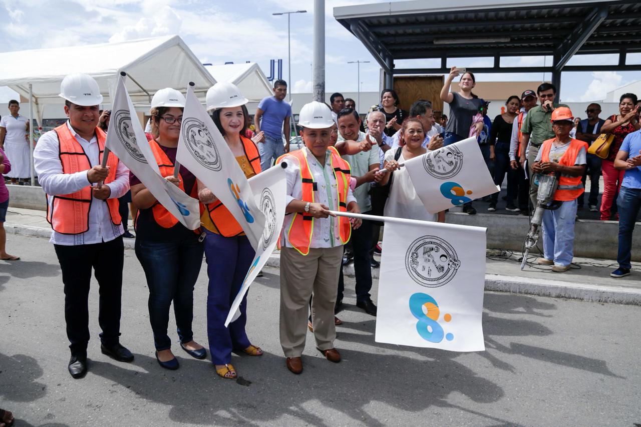 Más tarde, la Presidenta Municipal de trasladó a la colonia Ejidal, en la Avenida Constituyentes entre la 115 y 120 avenida, y al fraccionamiento Villas del Sol, sobre la Prolongación CTM entre avenida Loros y Pavo Real, en ambos casos para dar inicio a los trabajos de la construcción de los otros dos paraderos. Estas obras beneficiarán a más de 42 mil usuarios.