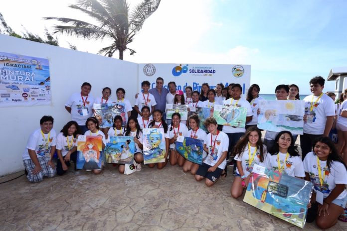 Solidaridad.- La Presidenta Municipal de Solidaridad, Cristina Torres Gómez, promueve el cuidado y preservación de los recursos naturales a través del Quinto Concurso de Pintura Mural “Playa, Arte y Conciencia” que organiza la Dirección General de la Zona Federal Marítimo Terrestre (ZOFEMAT) en el acceso a la playa Xcalacoco.