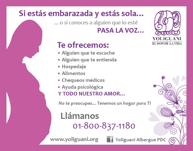 Por último dijo que la mejor manera de apoyar al Albergue Yoliguani, es la publicidad de boca en boca, “pues si existe una chica embarazada con algún tipo de dificultad económica, emocional o por estar lejos de la familia, que se sienta sola o necesite ayuda, es bueno que se entere que existe un lugar en donde se le puede apoyar”.