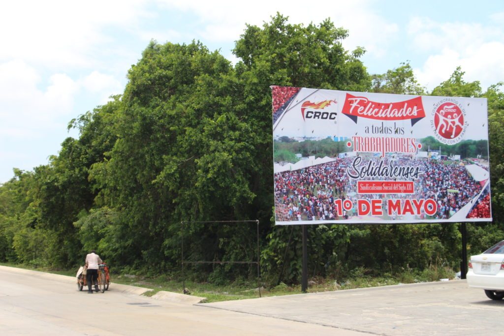 Playa del Carmen, Q. Roo.- Son las calles el sitio de trabajo de los comerciantes que de sol a sol se esfuerzan por el sustento de sus familias, pero esos ambulantes cargan la enorme ‘cruz’ de mantener también al líder de la CROC, Martín de la Cruz, actual candidato del PRI a la alcaldía de Solidaridad, quien derrochar el dinero de las cuotas sindicales en el pago de anuncios espectaculares que ya se pueden ver por las calles de este municipio, con miras a la campaña electoral que arrancará el próximo 14 de mayo.