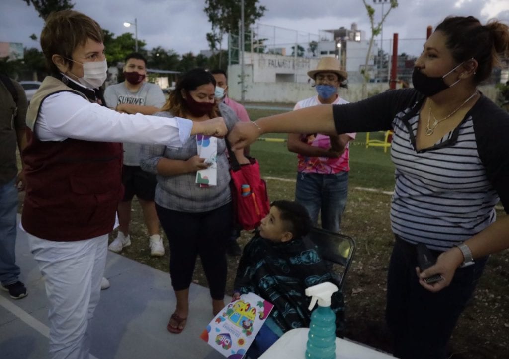 Playa del Carmen, Quintana Roo, a 19 de noviembre del 2020.- “Cuando salimos al encuentro de la gente, hacemos realidad nuestro compromiso de ser un gobierno de puertas abiertas, cercano, atento, que escucha y resuelve de manera directa. No me cansaré de decirlo: gracias a estos espacios de encuentro, gobierno y sociedad trabajamos juntos en la construcción de Solidaridad”, destacó Laura Beristain Navarrete, presidenta municipal de Solidaridad, al llevar el Programa “Todos Somos Solidaridad” a los habitantes del fraccionamiento Palmas I.