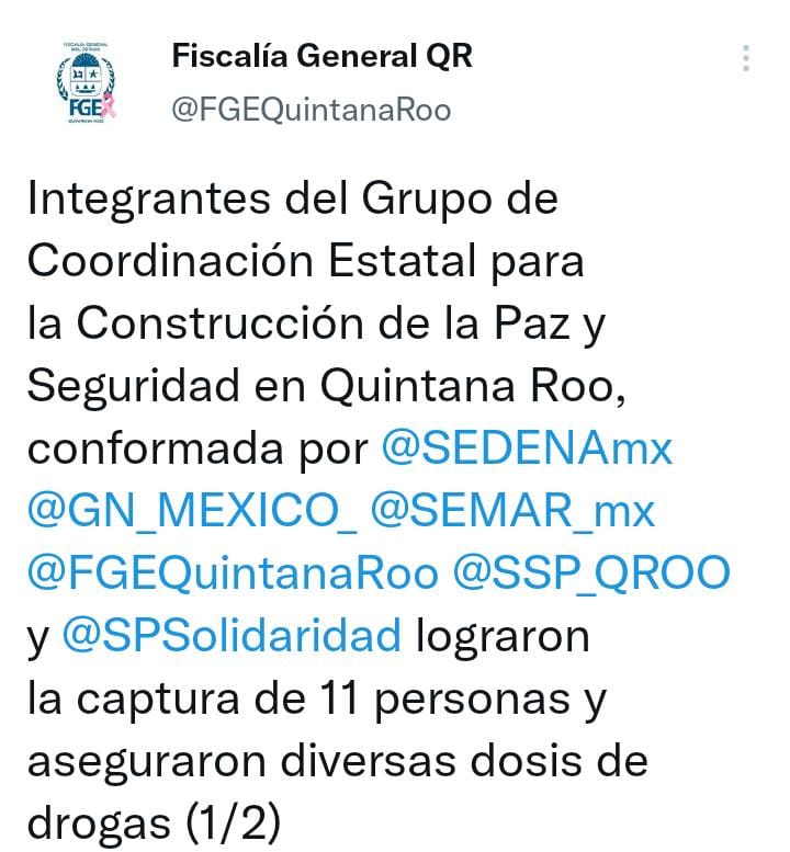 También se dio a conocer que los detenidos fueron trasladados a Cancún para ser puestos a disposición de la Fiscalía Especializada de Atención al Narcomenudeo.