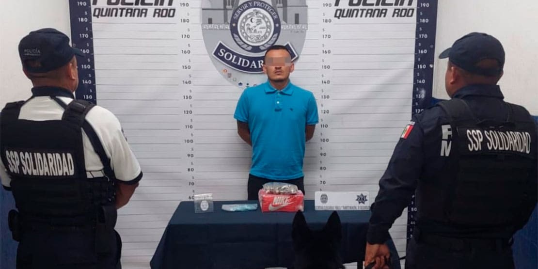 Finalmente y también en la Quinta Avenida, pero en su cruce con la calle 2, fue asegurado Agustín “N” de 34 años, originario de Morelos, presuntamente después de que una Unidad K9 realizara un marcaje de alerta, al pasar junto a él durante un operativo de vigilancia.