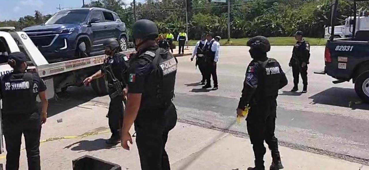 En este punto de la carretera 307, a la altura de la embotelladora Coca Cola, acudieron agentes de la Policía Municipal, Estatal, Guardia Nacional y Ejército. Allí, una patrulla le cerró el paso al coche en fuga, estrellándose en su contra, para así obligarlos a detenerse.
