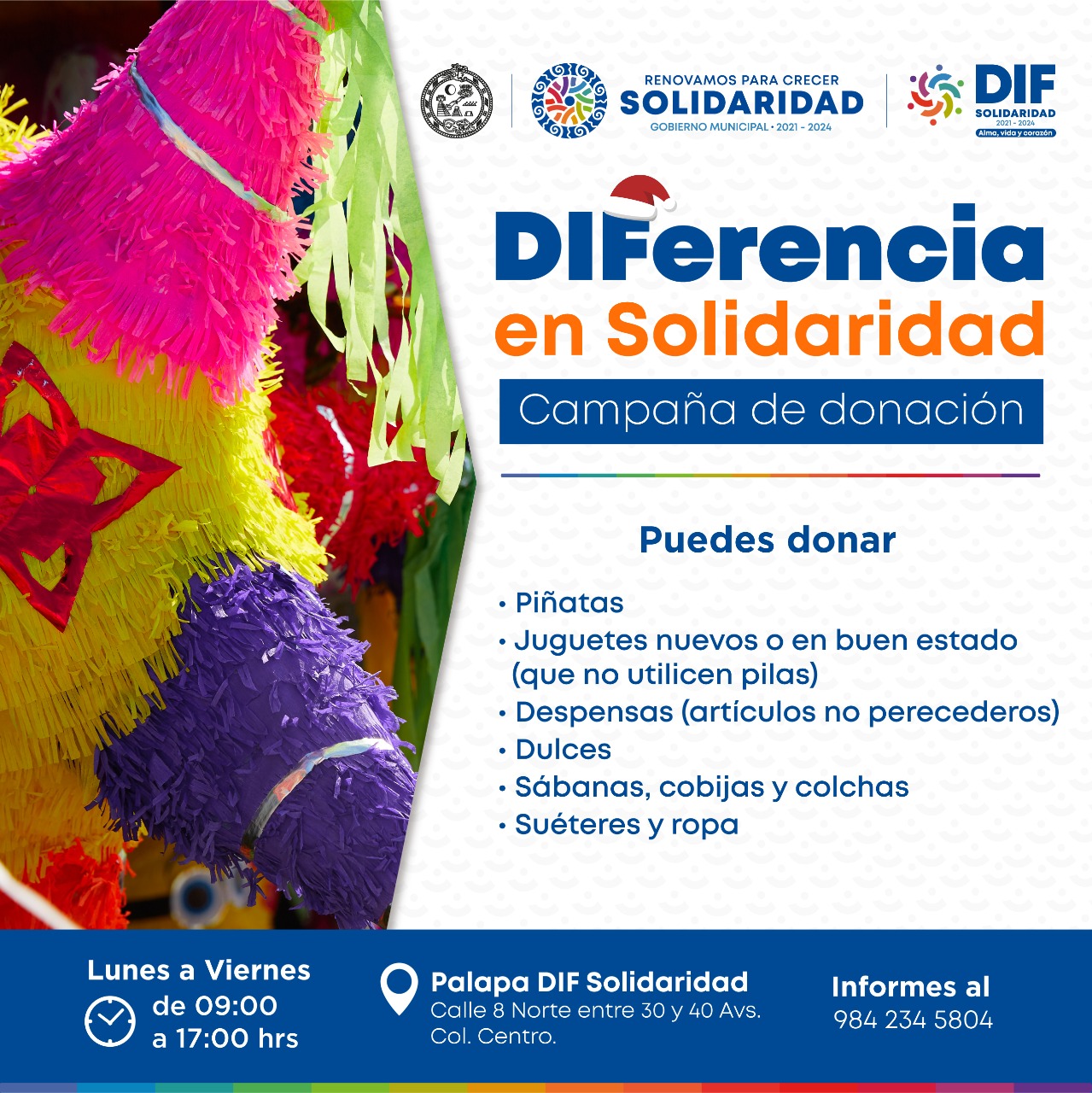 La presidenta honoraria invitó a la comunidad en general a participar con esta campaña llevando sus donativos a las instalaciones del DIF Municipal ubicadas en calle 8 norte entre avenidas 30 y 40, de lunes a viernes de 09:00 a 17:00 horas. Para mayores informes llamar al teléfono 9842345804.