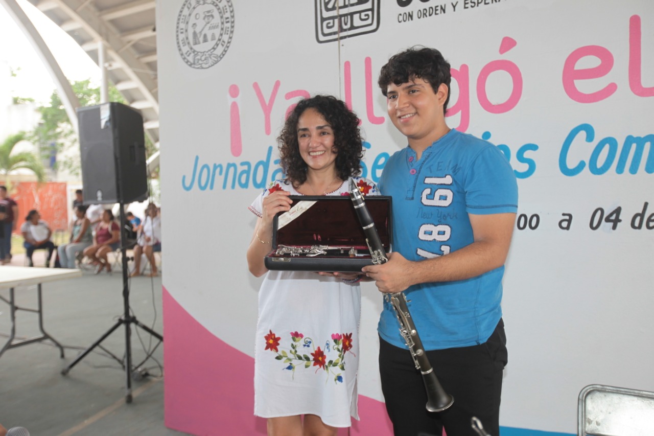 Aunado a esto, para hacerles pasar un buen momento a los más pequeños, se realizaron dinámicas a cargo del personal de Recreación Cultura y Deporte (RECUDE), así como la presentación del joven Joseph Marrufo Rivera de 16 años, a quién se le donó un clarinete.