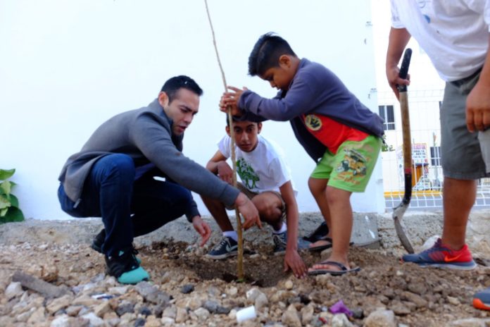 Estas plantas, fueron donadas por José Alberto Quian Ucab y el Ingeniero Rafael Reynoso Valdez del vivero Plantamex, además de otros dos volquetes con tierra enviados por el Diputado Federal José Luis Toledo Medina.