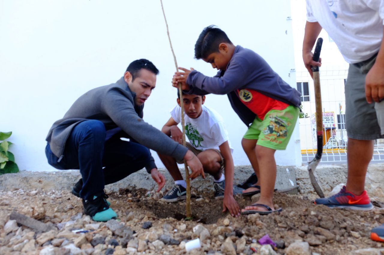 Parte del compromiso fue reforestar la escuela y, en este sentido, con la ayuda de José Alberto Quian Ucab, César García Lagunas y los jóvenes Emmanuel y Linda García Carrillo de Plant-for-the-Planet; el Diputado Carlos Toledo, integrante de la XV Legislatura del Congreso de Quintana Roo, maestros, padres de familia y alumnos reforestaron 10 palmeras de coco y 25 maculis.