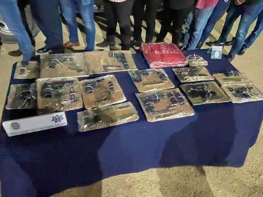 A bordo de las unidades fueron encontrados 13 sujetos, quienes tenían en su poder nueve armas de fuego cortas, cinco cargadores abastecidos, un radio de comunicación y una hielera.