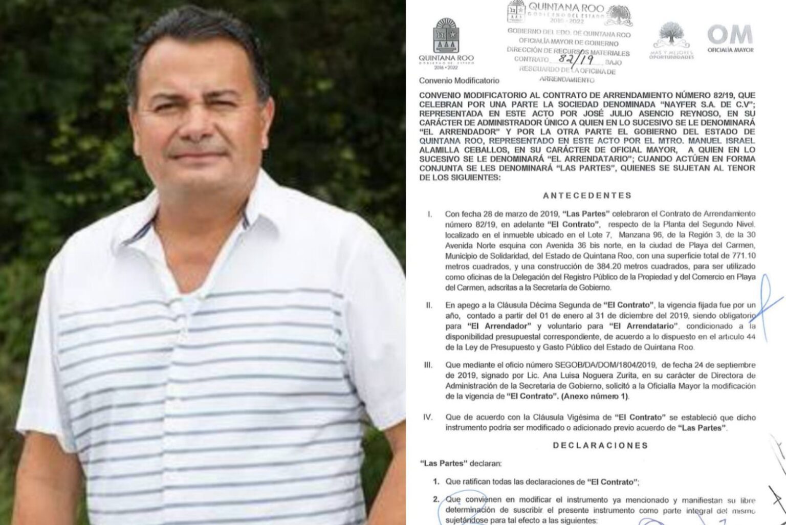 Pese a los escándalos que rodean la figura de este hombre, el Gobierno del Estado celebró un contrato de arrendamiento número 82/19 que vence el 31 de diciembre del 2022, el cual cede para uso de oficinas gubernamentales unos 771.10 metros cuadrados.