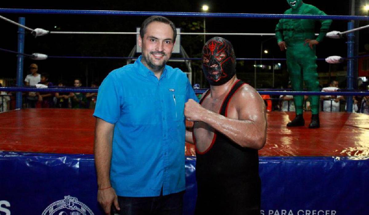 Playa del Carmen, Solidaridad, Q. Roo a 28 de septiembre de 2023.- Los rudos se llevaron la noche al imponerse en la lucha estelar de la función de “Lucha Libre en tu Colonia”, que promueve la presidenta municipal de Solidaridad, Lili Campos, a través del Instituto del Deporte Municipal, y que en esta edición llegó a la colonia 28 de julio, El Sagrado y Tizoc demostraron que el bando rudo manda y se impusieron a Duende Verde y Chikitin, ante cientos de solidarenses que vitorearon a sus ídolos tras el espectáculo brindado sobre el ring.