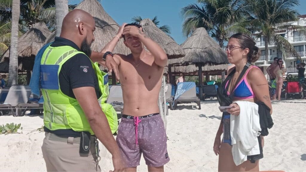 La pareja fue ubicada y transportada a la orilla del mar, en la zona de Xcalacoco, donde recibieron atención prehospitalaria por parte de paramédicos de Protección Civil.