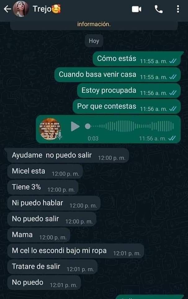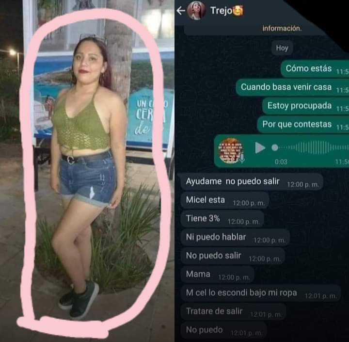 “MAMÁ NO PUEDO HABLAR, NO PUEDO SALIR, SOLO TENGO 3% DE BATERIA MI CEL LO ESCONDÍ DEBAJO DE MI ROPA”, escribióa su madre la joven Lumi, antes de desaparecer.