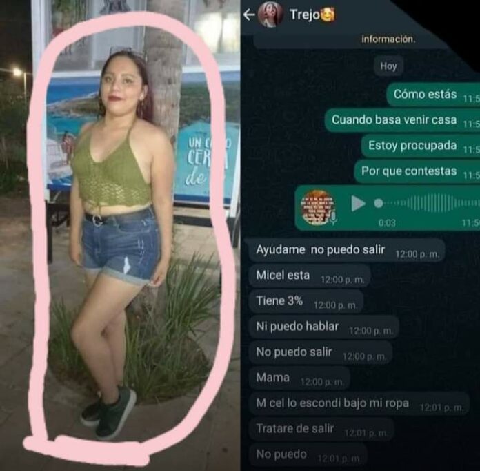“Ayudame no podía salir, mi cel tiene 3%, no puedo hablar, no puedo salir”, escribió la joven a su madre.