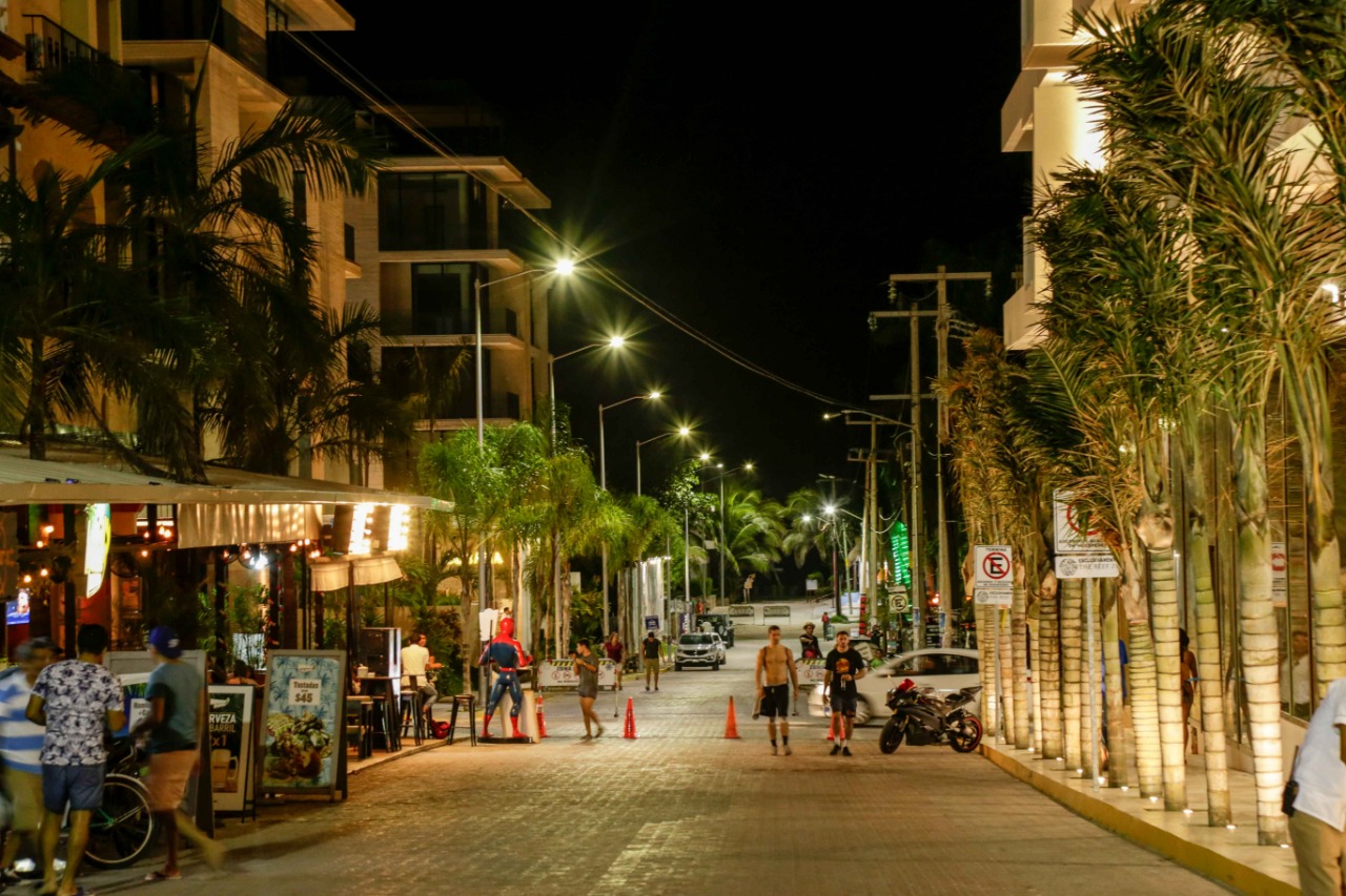 Playa del Carmen, Quintana Roo.-El Gobierno de Solidaridad, encabezado por la Presidenta Municipal, Cristina Torres Gómez, inauguró la remodelación, mantenimiento y colocación del alumbrado público en la zona turística de Playa del Carmen en el cuadrante que abarca entre las avenidas Juárez y CTM y de la Quinta avenida a la playa. Estas obras fueron realizadas por recursos del Fideicomiso del Derecho al Saneamiento Ambiental (FDSA).