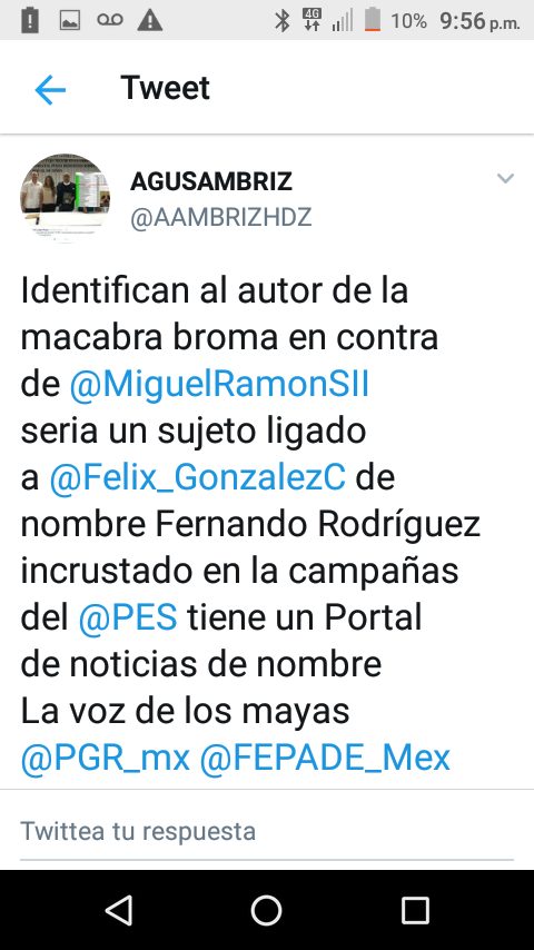 En respuesta Félix González Canto en redes sociales, rechazó conocer al sujeto identificado como Fernando Rodríguez.
