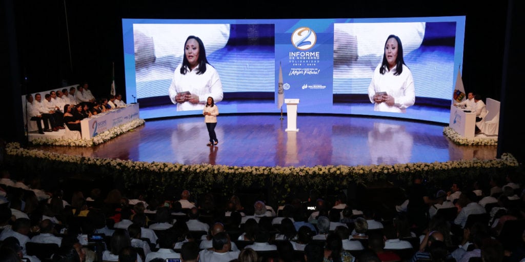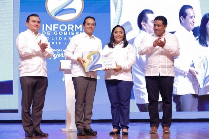 Playa del Carmen, Quintana Roo.-La Presidenta Municipal de Solidaridad, Cristina Torres Gómez, presentó a los ciudadanos su Segundo Informe de Gobierno en el que destacó que el trabajo en conjunto con la ciudadanía y la iniciativa privada, la transparencia y la estricta disciplina financiera de su Administración, dieron resultados positivos para que hoy se pueda entregar un gobierno que es la base para un .
