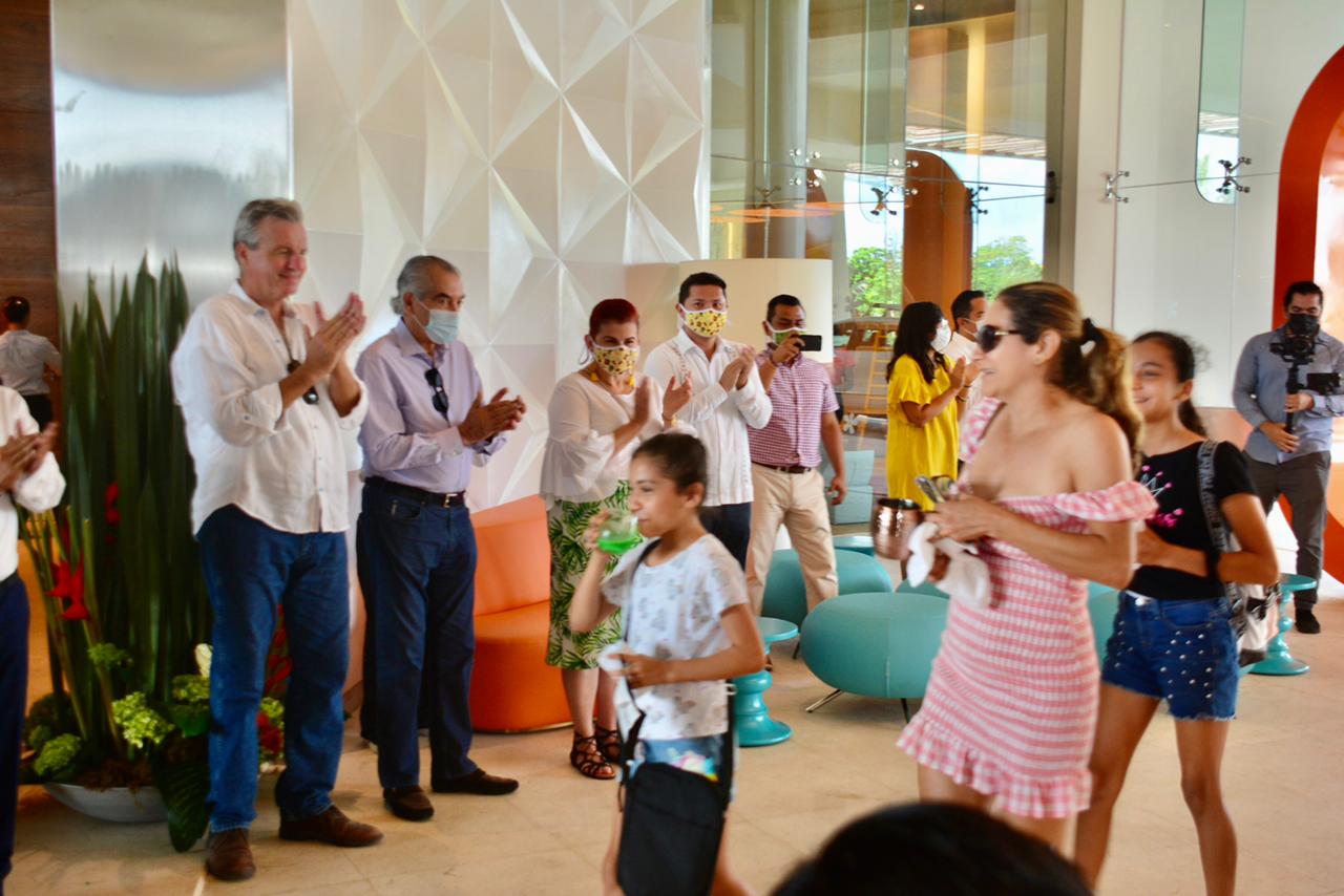 En paralelo a la rueda de prensa para anunciar esta apertura, ya comenzaban a llegar los primeros huéspedes, quienes fueron recibidos con un festejo especial, entre los protocolos sanitarios ya habituales debido a la pandemia.