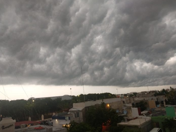 Playa del Carmen.- Una enorme nube negra cubre en estos momentos Playa del Carmen, por lo que se prevé una fuerte tromba durante las próximas horas o minutos.