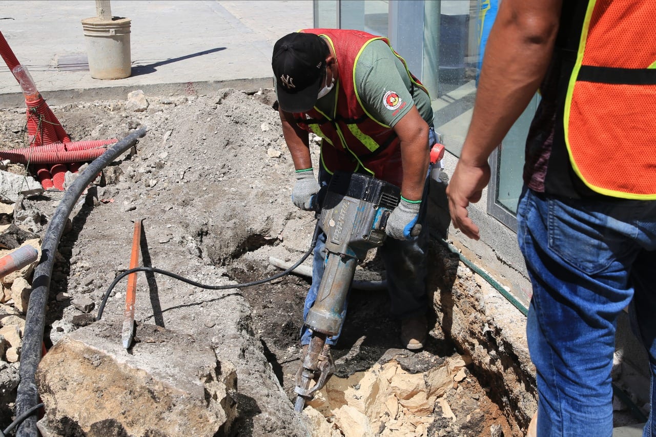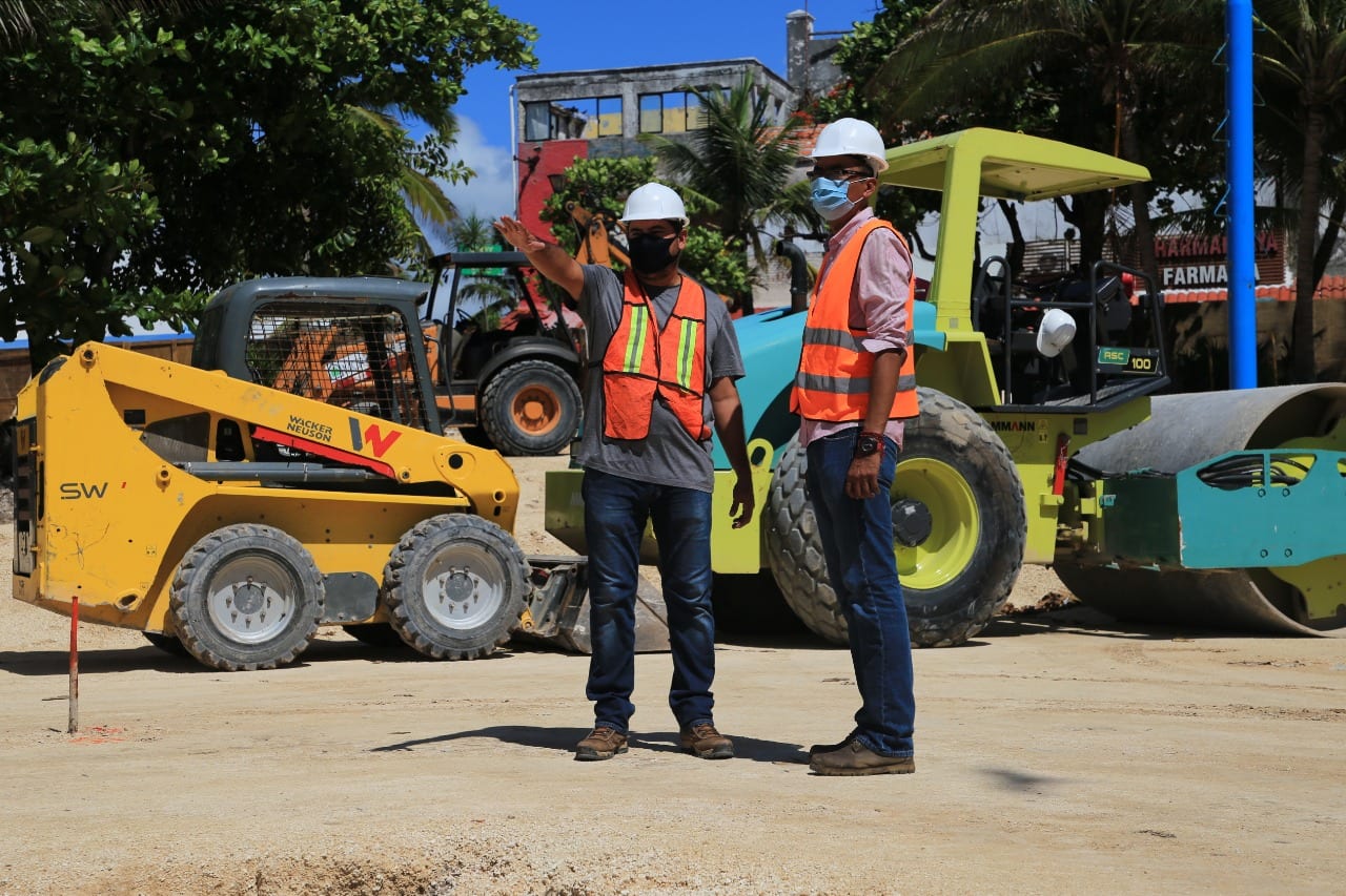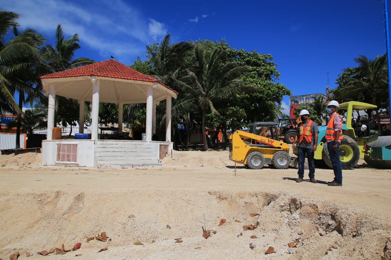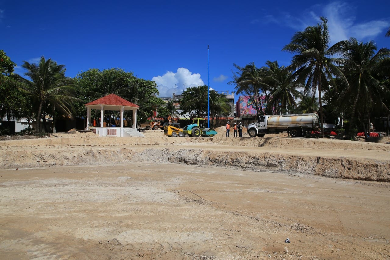 Playa del Carmen, Quintana Roo.-Rápidamente avanza la remodelación de dos de los emblemas de Playa del Carmen: El Parque Fundadores y la Quinta Avenida, para que pronto estén listos y ofrezcan en la nueva normalidad, belleza y diversidad al turismo.