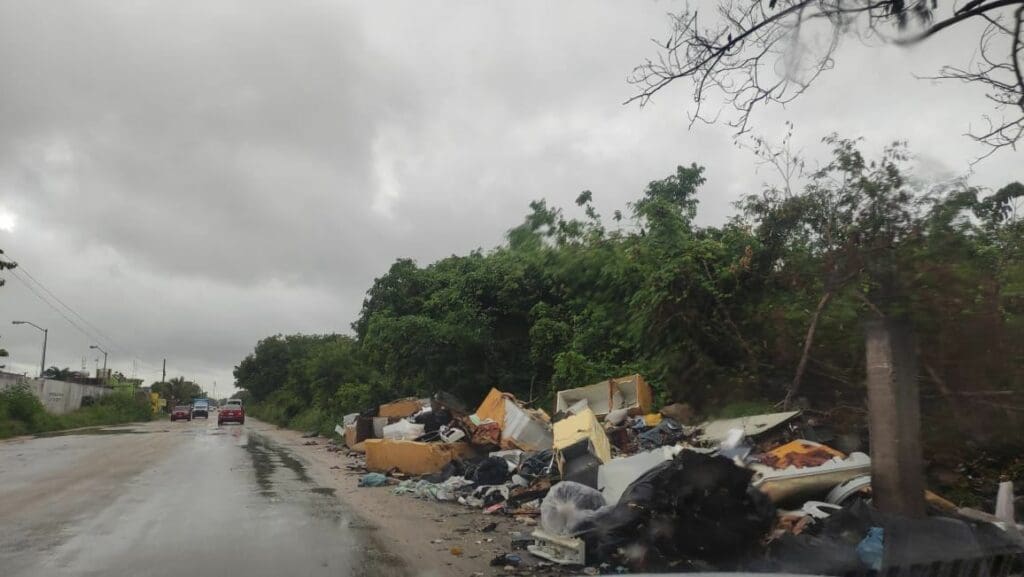 Playa del Carmen.- Un tiradero clandestino surgió prácticamente en menos de una semana a un costado de la avenida Lilis, frente al fraccionamiento irregular InHouse, al acudir ciudadanos a este punto a dejar su basura.